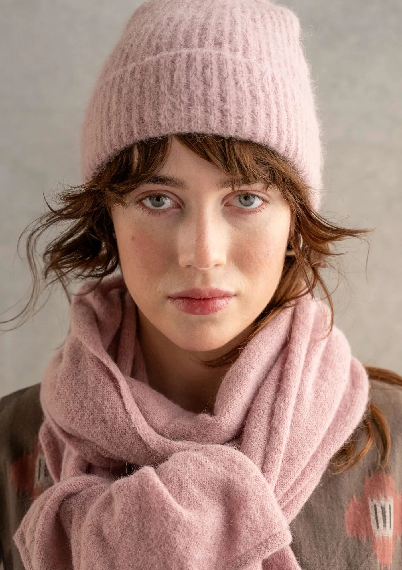 Mjuk och mysig mössa att dra ner över öronen när kylan biter i. Luftigt patentstickad i härlig alpacka/ullmix. En enkel modell med uppvikt nederkant.