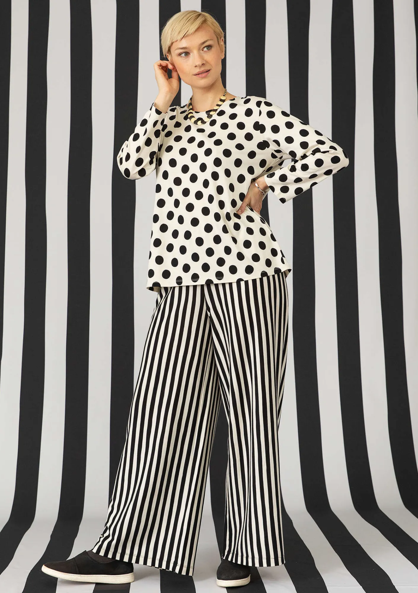 Randig trikåbyxa i ekologisk bomull/modal-Gudrun Sjödén