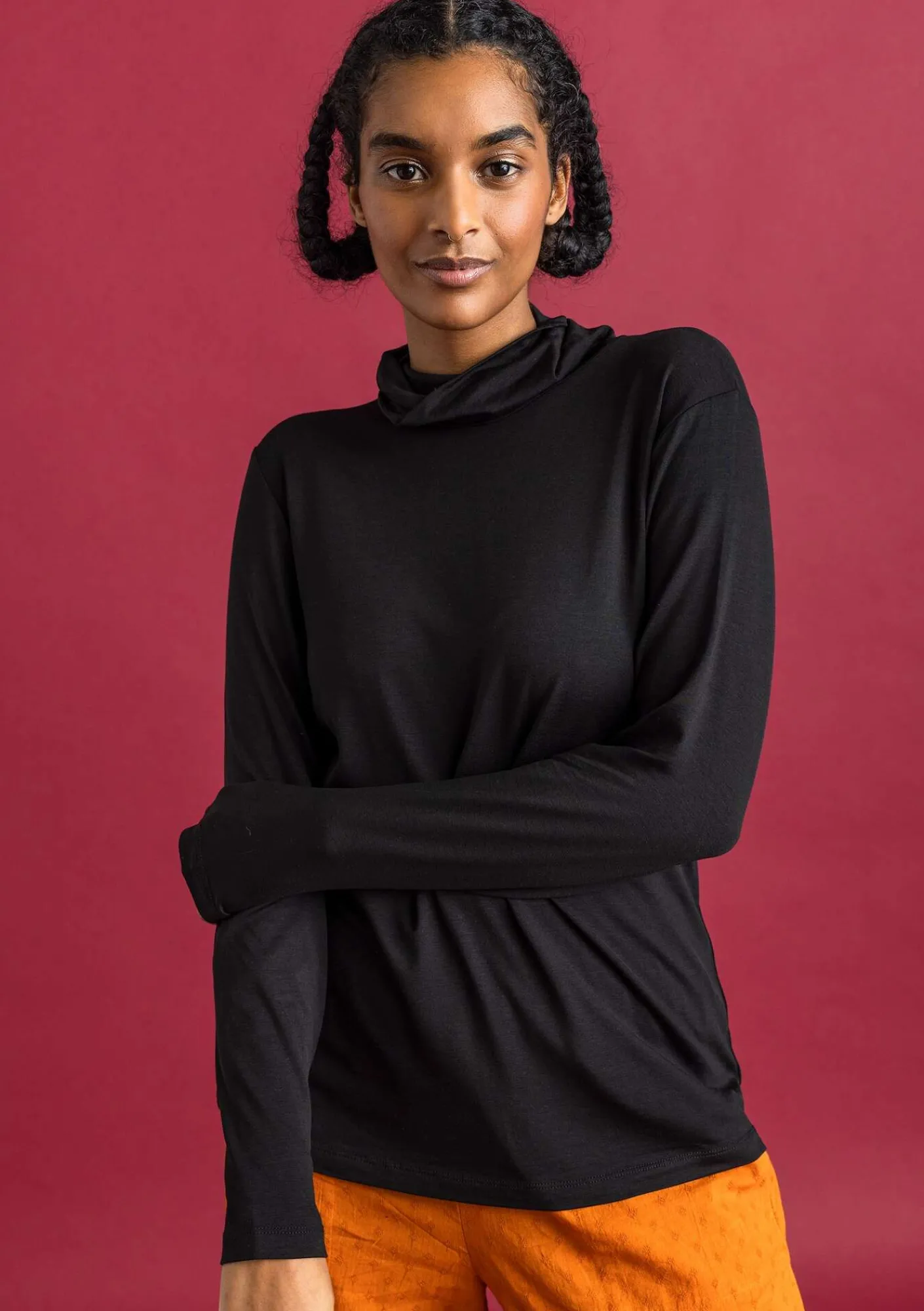 Vår återkommande favorit i en bekväm modell. Den har en enkel polokrage som kan vikas dubbel och en hellång ärm. Kvaliteten är mycket mjuk och följsam.