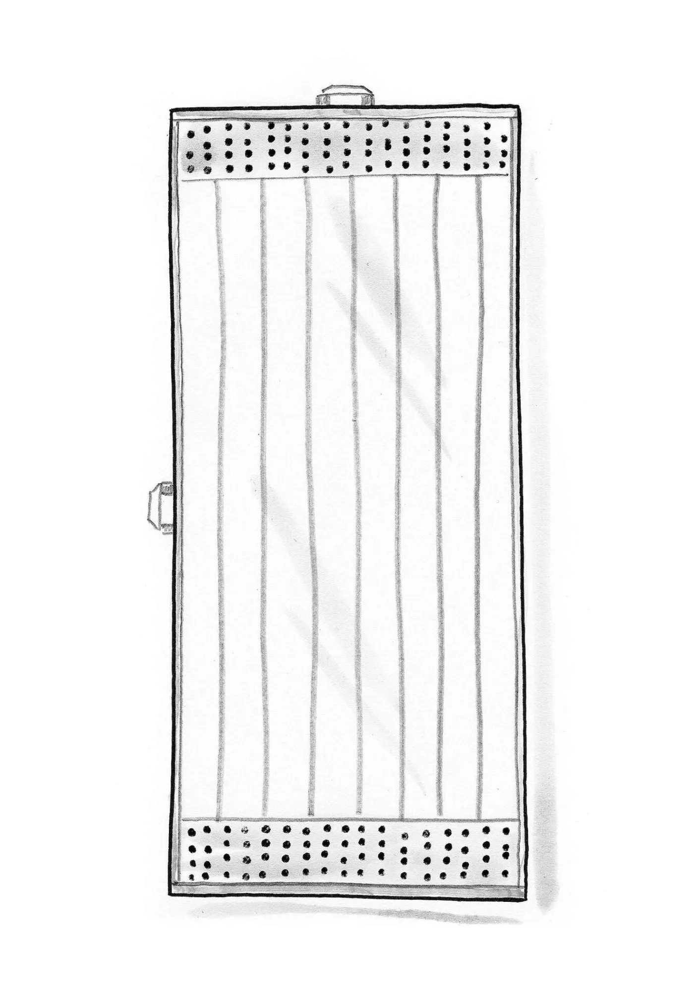 Duschhanduk med ränder och prickig bård. Kontrastfärgade kanter och hängare på kort- och långsidan.